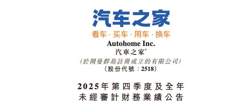 汽车之家2025年Q4净利润同比下降27% 启动2亿美元回购快讯