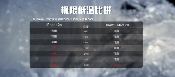 华为Mate 20与iPhone Xs极限低温比拼快报