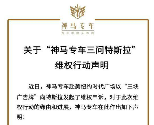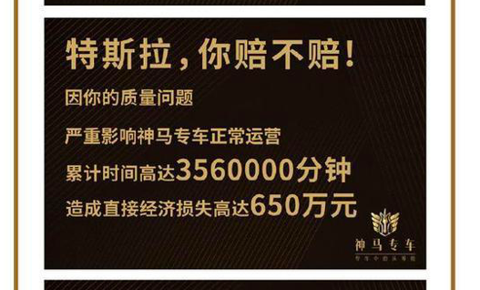 此外,神马专车称以“三块广告牌”形式,去到特斯拉的上市地美国纽约进行维权,通过时代广场路透社大屏三问特斯拉“修不修!”“赔不赔!”“认不认!”。