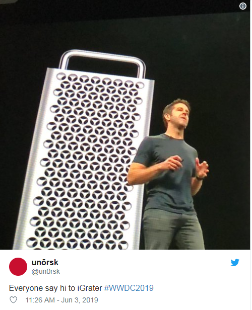 网友@HarmHoelting在Twitter上贴出一张奶酪刨丝机的图片,配文说:“大爱新Mac Pro的设计。”