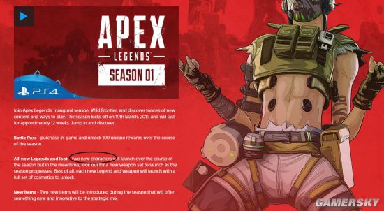 上周《Apex英雄》新角色辛烷Octane已经正式上线,根据外媒PCGamesN报道,PlayStaion官方网站的信息显示本赛季《Apex英雄》还会加入另外一位新角色。