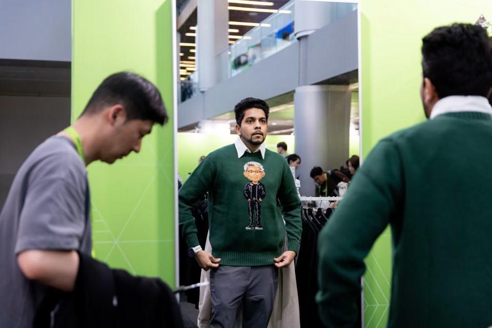 尽管Meta官方并未发售,一款印有CEO黄仁勋卡通形象、售价高达178美元的毛衣成了现场最抢手的纪念品,如今更直接穿在了CEO们的身上。