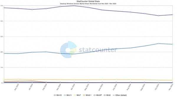 12月2日消息,在过去的11月,Windows 11的份额不升反降,这让微软坐不住了。