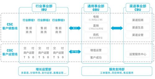 将原SCG-电商事业部升级为通用事业部(GBU),原SCG-渠道中心升级为渠道事业部(CBU),分别负责通用行业销售、增值运营和客户成功的职责,以及渠道及生态体系的建设和运营。