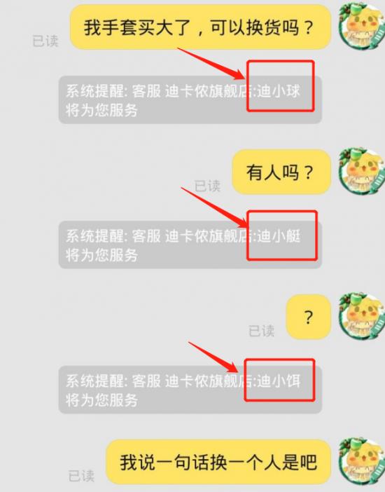 此外,可能是人手不足的原因,店铺客服经常被吐槽不理人。某位想要换货的顾客,眼睁睁看着在线客服换了好几个,但却没一个人出来帮她解决问题。
