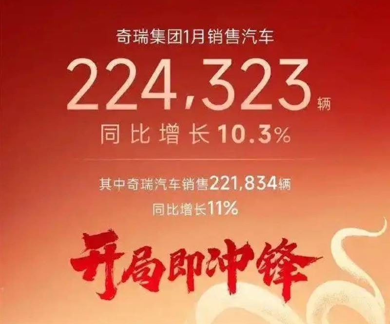 奇瑞集团1月整体销量达到224,323辆,同比增长10.3%;长安汽车1月销量达到27.57万辆,同比下降1.66%。可以说,这四大国产品牌1月销量都是“2字”或是“3字”开头。