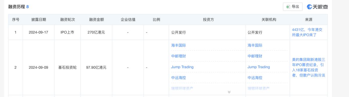 天眼查APP信息显示,2024年8月美的赴港上市。如今,美的港股市值超过6800亿港元。