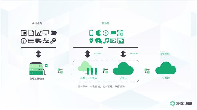以云计算厂商青云QingCloud为例,在混合云领域有着得天独厚的先发优势,无论是技术架构还是落地实践都走在国内云服务厂商的前列,也是唯一一家拥有公私混托一体的架构的企业,提供具备一致使用体验并可统一运维管理的一体化混合云解决方案。