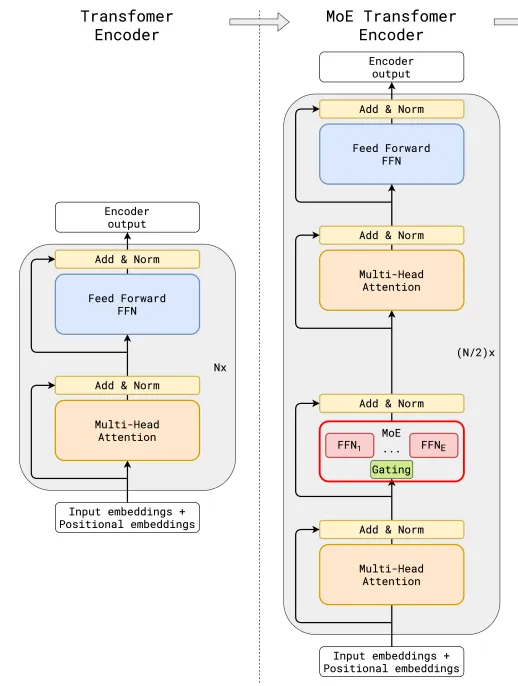在MoE模型上,虽说核心思路是一致的,但是关于门控网络的位置、模型、专家数量、以及MoE与Transformer架构的具体结合方案,各家方案都不尽相同,由此将拉开各家MoE模型在应用上的差距。