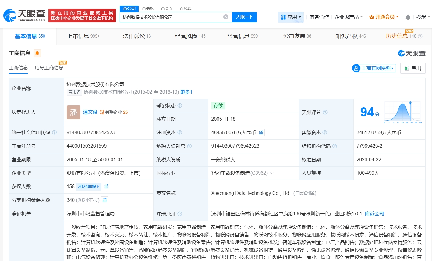 天眼查App显示,近日,协创数据(300857)发生工商变更,注册资本由约3.5亿人民币增至约4.8亿人民币,增幅约40%。