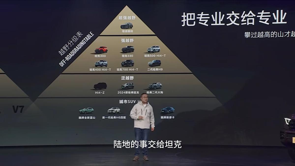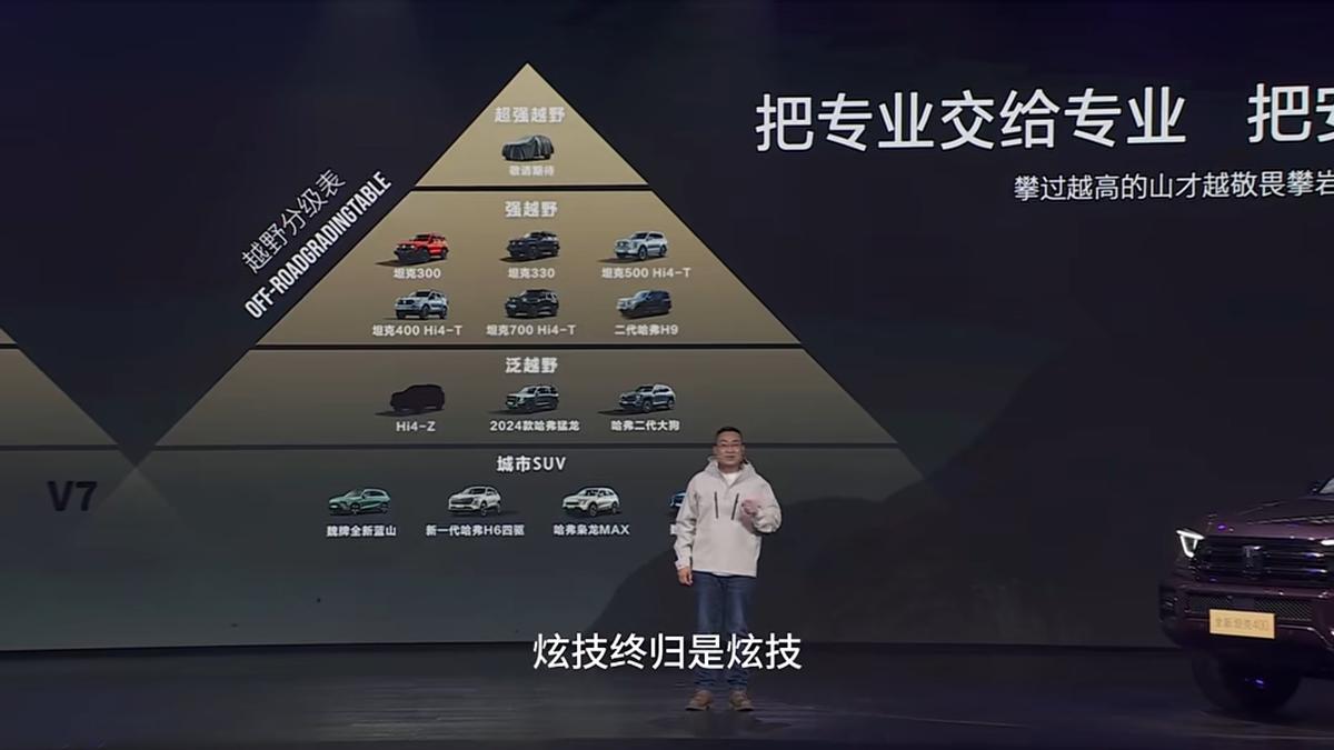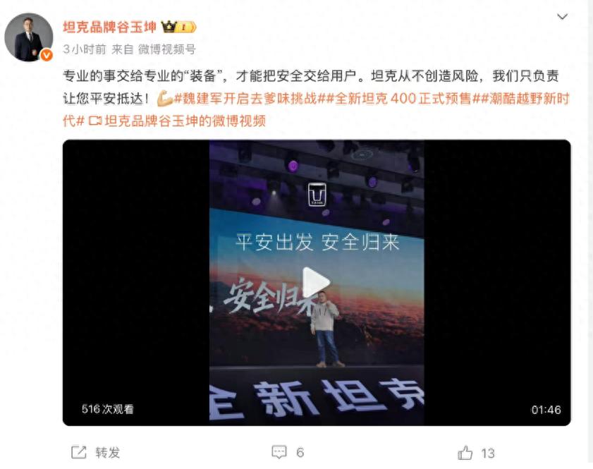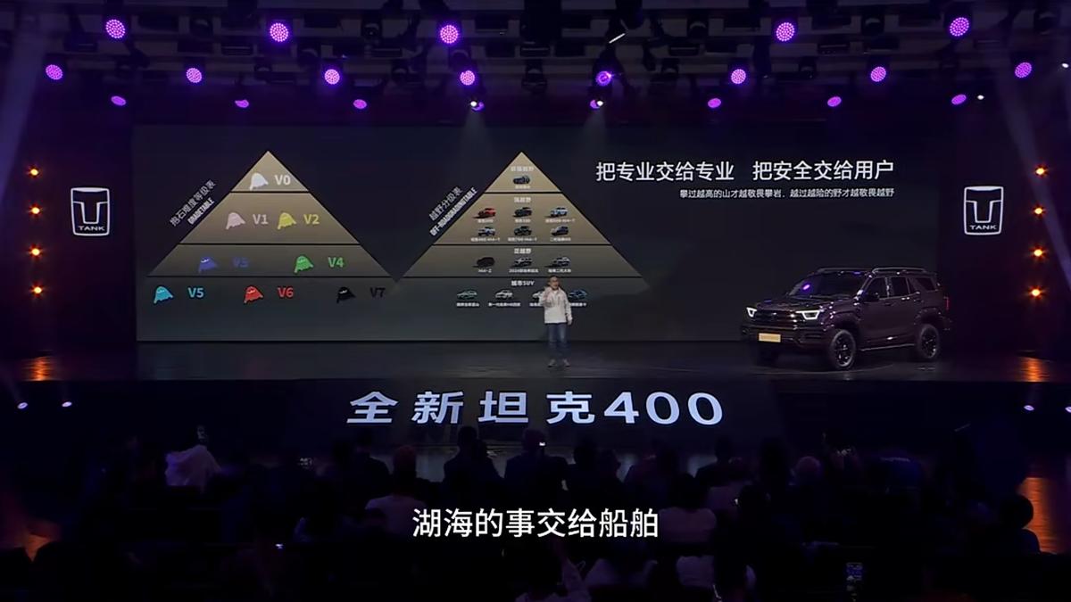 只是没想到的是,最先发难的不是网友,而是友商。仅仅几天后,在坦克400的上市发布会上,坦克品牌高管谷玉坤以一番意味深长的表态,将矛头直指这一事件。尽管未直接点名,但“炫技终归是炫技”的表述,配合“陆地的事交给坦克,湖海的事交给船舶”指向性已相当明确,这种在自家新品发布会上含沙射影批评同行的做法,立即引发了广泛讨论。
