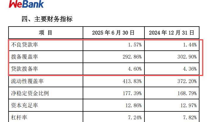 客群下沉的后果,在资产质量指标上已有所显现。截至2025年6月末,微众银行不良贷款率升至1.57%,较年初上升0.13个百分点;拨备覆盖率降至292.86%,较年初减少10.04个百分点。值得警惕的是,微粒贷客群中约18%为无人行征信记录的“首贷户”,这类客群在消费萎缩与收入预期下行的宏观环境下,逾期风险敞口远高于有征信记录的客群。资产质量的持续承压,将进一步压缩微众银行的风险缓冲空间。