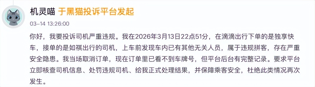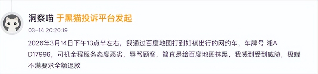 记者在黑猫投诉平台发现,截至 2026年4月8日12 时,黑猫投诉平台中包含 “如祺出行” 的投诉案件累计达 3310条,司乘两端均有大量维权诉求。其中乘客端投诉集中在无缘无故扣钱、未乘车扣款、司机辱骂乘客、违规拼客等情况,司机端则聚焦于服务后被恶意克扣费用等问题。
