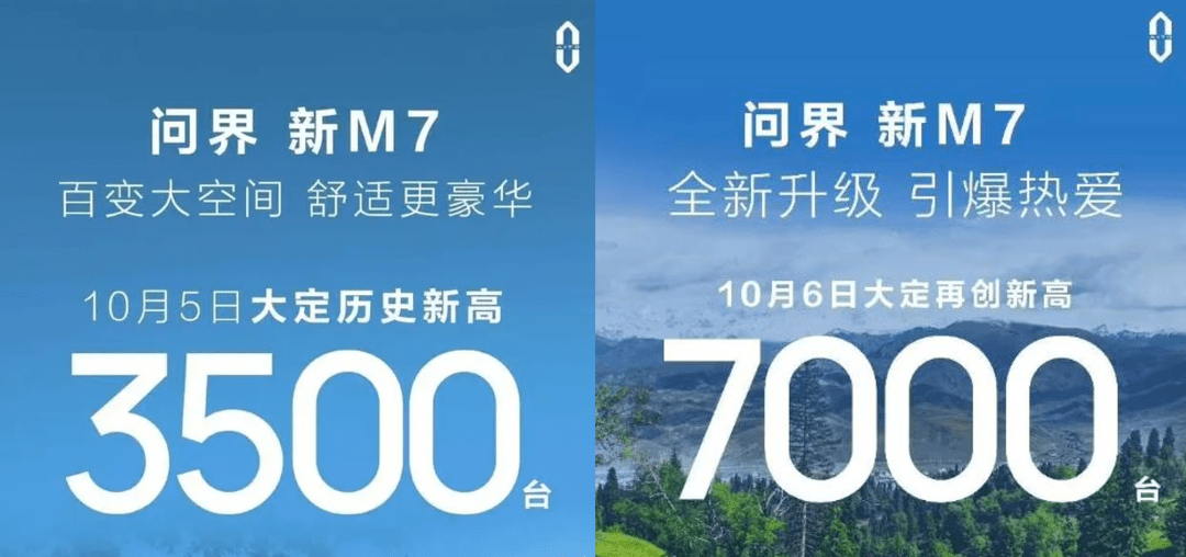 新款 M7 在上市不到一个月,不仅收获了 5 万份大定订单,还创造了一天卖 7000 台的奇迹。