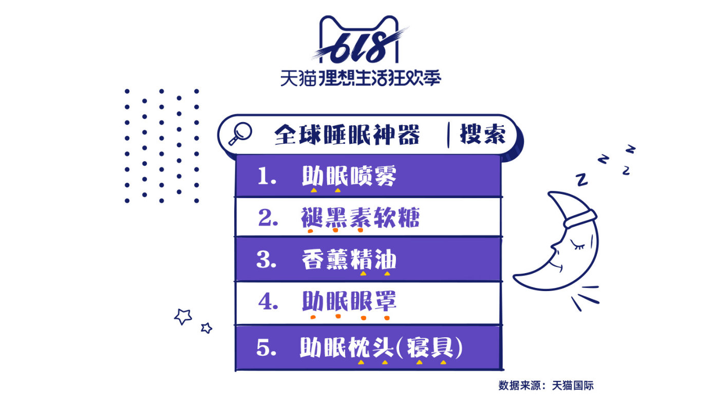 相比之下,为了睡个好觉,90、95后年轻人的需求更为精致。在天猫国际上,助眠喷雾、蒸汽眼罩、真丝眼罩、隔音耳塞、香薰精油等助眠小产品消费增速最快。