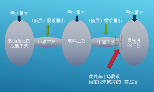 在短期内可能这样会有较好的收益,财务报表也能好看一些。但是半导体行业是一个飞速发展的行业,也许现在一些老的工艺还可以被称之为“成熟工艺”,那么几年十几年之后呢?这些老工艺可就真变成了“淘汰工艺”了。而且到那时新的工艺短期内是跟进不上的,老的工艺又没人用,到那时企业生存就会变成问题了。所以即使是为了未来的生存,也要加大研发力度,发展先进工艺。