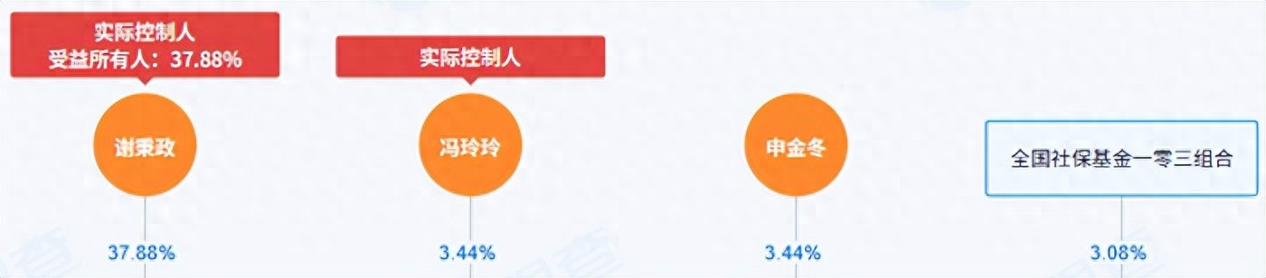 天眼查APP显示,申金冬是除了两位实控人之外的最大股东,持有3.44%的股份。