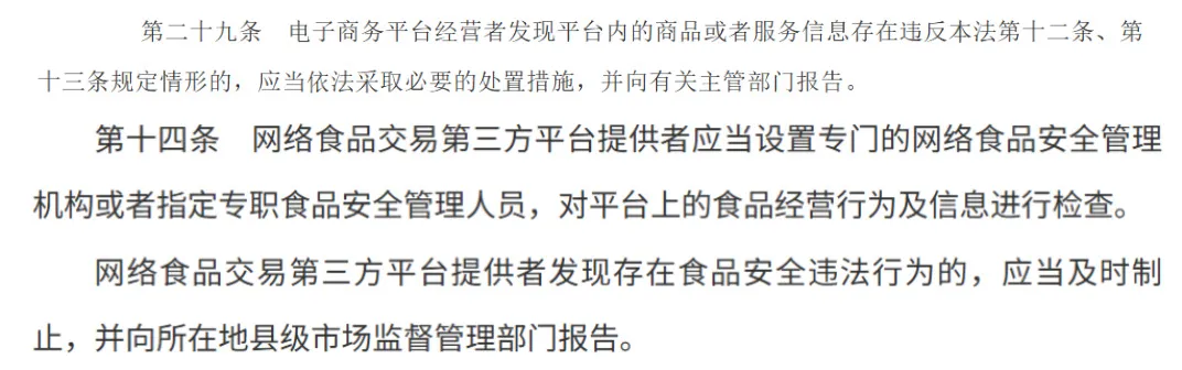 图源:《中华人民共和国电子商务法》《网络食品安全违法行为查处办法》