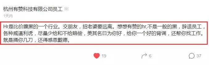 在互联网职场论坛,一位职场人发帖怒斥到。Hr是比较腹黑的一个行业。交朋友,找老婆要远离。想想有赞的hr,不是一般的黑,辞退员工,各种威逼利诱,尽量少给和不给赔偿,美其名曰为你好,给你一个好的背调,还帮你找工作。就是捅你几刀,还得感恩戴德。这样的吐槽也是瞬间引起了网友的围观与议论,我们先来看看网友的围观与议论。