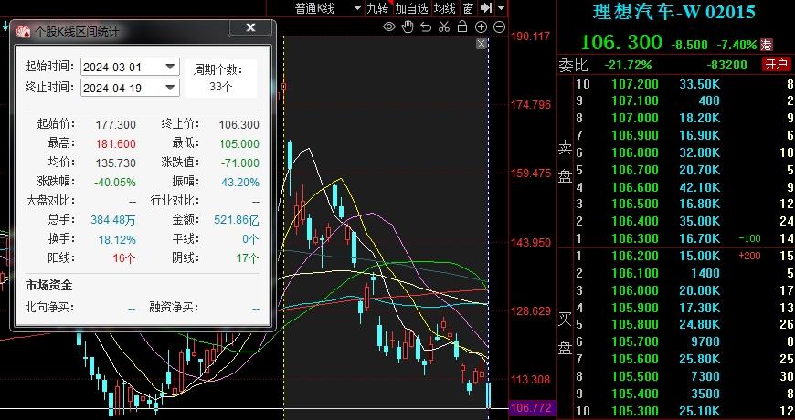 3月2日,理想MEGA发布的第二天,理想汽车港股大跌超10%,仅仅一天之内股价便被资本市场打了九折。而这还只是开胃菜,随后理想汽车股价一路走低,截至发稿,理想汽车股价报106.3港元/股,在33个交易日内,理想汽车跌超40%,市值蒸发1500亿元。