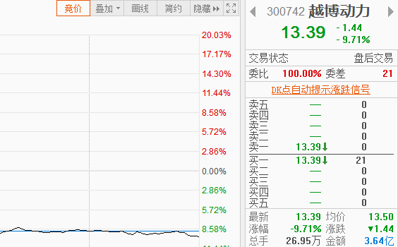 受多个利空消息影响,越博动力开盘股价一度大跌12%,之后股价有所反弹,截止收盘,越博动力跌9.71%。