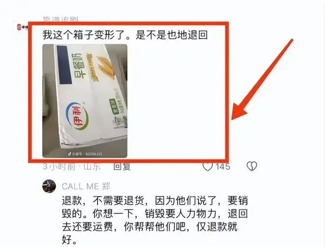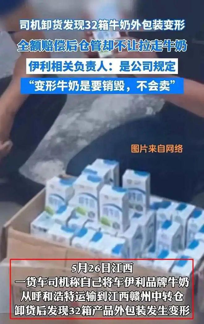 但司机赔偿后想要带走变形牛奶,却被告知:伊利规定,损坏的产品需要集中销毁,不能带走。最终只拿到3箱牛奶。