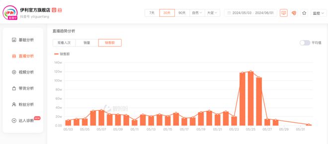 值得一提的是,今年618战绩,京东只公布了蒙牛,没有公布伊利,难道因为伊利数据可能并不是很好?此外,蝉妈妈平台显示,伊利官方旗舰店在抖音直播间的销售额,更是从5月26日的最高250万,跌到了6月1日的2.5万,缩水100倍......