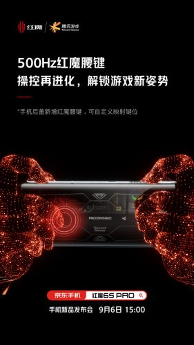 腾讯红魔游戏手机6S Pro发布最新预热海报:新增500Hz红魔腰键快报