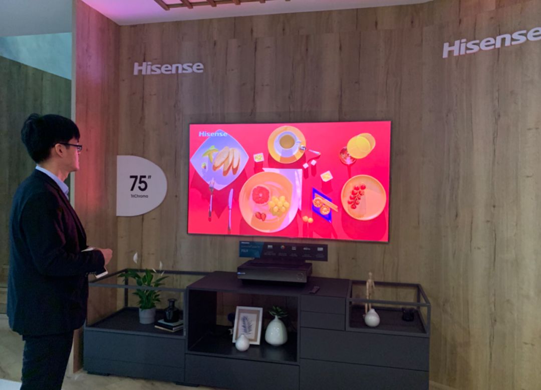 图片说明:IFA 2019,海信推出屏幕发声的100英寸激光电视