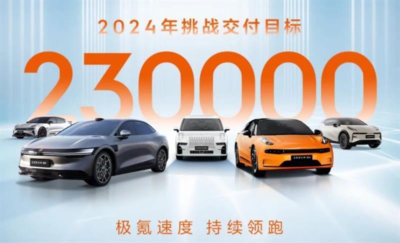1月8日,极氪在20万辆车下线的同时,公布2024年销量目标为23万辆。从数据上来看,这一目标较其2023年的交付量要求翻倍,而这也是极氪再次挑战翻倍增长的目标;2023年12月,极氪交付新车1.3万辆,同比增长18.9%,全年,极氪交付11.86万辆,实现同比增长65%。