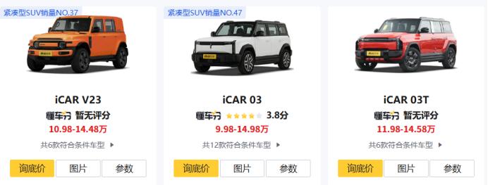 随着两款新车步入正轨,因“同门相争”导致的品牌阻力变大,其产品线混乱的问题暴露到台面。iCAR V23与iCAR 03,二者均主打“方盒子”设计,造型相似,价格区间几乎重叠,这也解释了他们此起彼伏的销量。