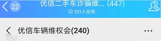 除了投诉量增加之外,在QQ和微信等社交网络上,出现了大量的优信维权群,每个群都有几百人。