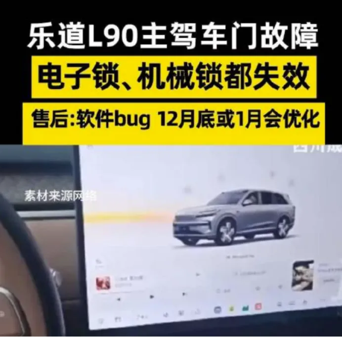 此外,11月,一位成都的乐道L90车主反映,车辆在行驶过程中车门突然无法正常开启,售后人员称是软件BUG,需等待优化。