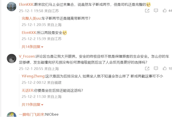 在舆论中,蔚来车身质量问题成为外界关注焦点,部分网友认为“蔚来ET6断成两截”无法接受,并表示“如果有人坐在后排,那么后果不堪设想”。而从过去的碰撞案例来看,车身在撞击隔离带后彻底断开,也是小概率事件。
