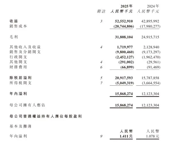 农夫山泉2025年业绩表现良好,各项财务指标都比较理想。