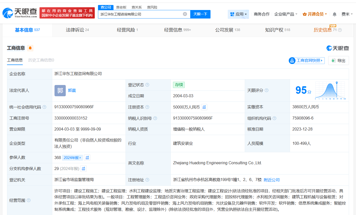 天眼查数据显示,华东勘测设计院和华东咨询公司近期不少招投标项目与中国电建所属企业关联。其中,在福建华安抽水蓄能电站下水库工程和输水发电系统工程的多个标段,上述两家公司也分别担任设计方和监理方,而该抽水蓄能电站施工方也为中国电建所属企业。