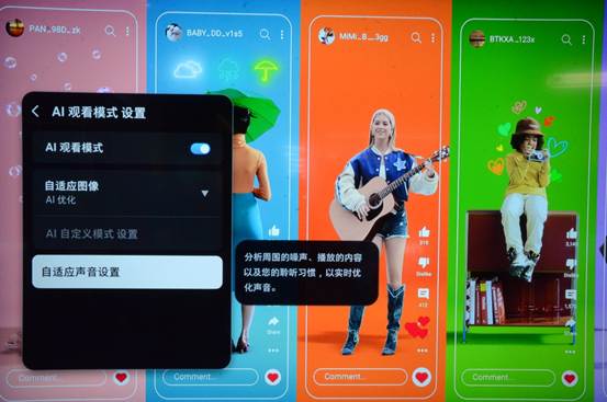 三星 Neo QLED QN80F 搭载了杜比全景声技术,能实现高保真的环绕声,营造清晰逼真的影视音效。通过样片测试,在吉他演奏片段时,琴弦震颤的细微音色变化都能清晰捕捉;人声通透饱满,真假音转换都能自然还原。用户还能开启自适应声音功能,让AI实时分析语音音量和环境噪音以提高音频的清晰度。