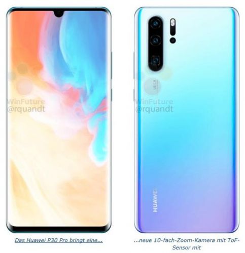 其他方面,根据此前曝光的消息,华为P30和P30 Pro两款新机均采用了水滴屏设计,其中P30后置竖排三摄,而P30 Pro后置四摄像头。均将搭载麒麟980处理器,配备8GB内存,其中P30将配备的是后置三摄像头,最高4000万像素,支持5倍无损变焦;而华为P30 Pro将后置四颗摄像头,有望支持10倍光学变焦。