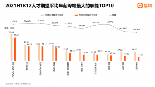 猎聘数据显示,2021年上半年中高端人才中,有超过20%的K12、在线教育的人才愿降薪跳槽。