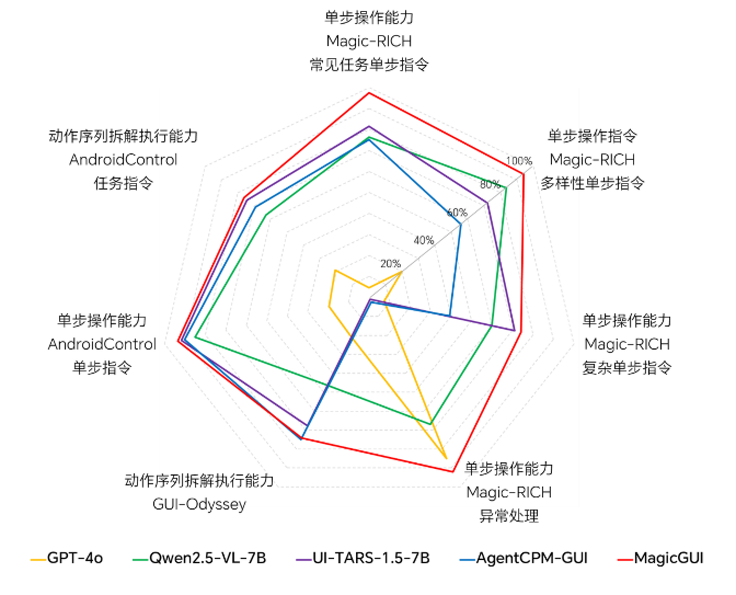 【TechWeb】全球科技变革浪潮下,人工智能成为最强主旋律。近日,世界人工智能大会(WAIC)在上海盛大举办,WAIC期间,荣耀正式发布自研多模态感知大模型——MagicGUI开源大模型。作为荣耀推出的首个GUI开源大模型,MagicGUI以7B(70亿)参数规模,支撑底层 AI 智能体的多模态感知与自动执行规划能力,比肩SOTA模型达到行业领先水平。