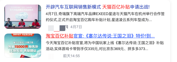 就比如这几天,新闻中,淘宝天猫在各领域宣布「百亿补贴」的出击,不仅有汽车大件、还有游戏等领域都在列。