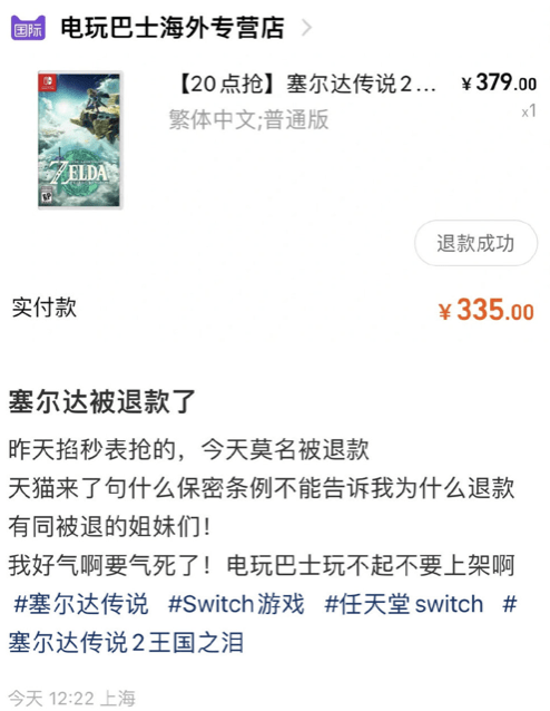 有不少消费者表示,自己在活动当天参加了这个活动,成功购买了《塞尔达传说2王国之泪》游戏卡带并完成付款。