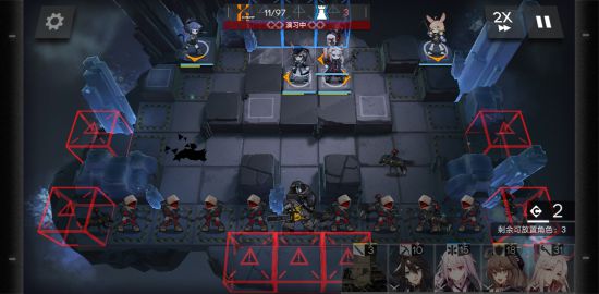 等鲍勃进入了射程后阿米娅、霜叶、地灵、远山纷纷开技能,接着是地灵向右、霜叶向左、阿米娅向左、流星向右,霜叶、流星、地灵、小车并非刚需。