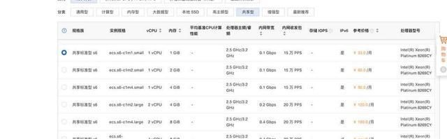 3.选择实列,也就是选择你的服务器配置。这里有很多配置,我就只列举一下新手需要的配置:1VCPU,2Gbit就可以满足需求了更多的实例我抽时间写一个适合不同行业的。