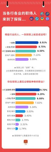 探探此次也公布了一些有趣的数据现象。例如,探探上最受欢迎的12星座前三名分别是摩羯座、天秤座和水瓶座,其中摩羯座受欢迎的程度是第二名的三倍,全平台有23.63%的“喜欢”都给了他们。在城市排名中,北京、深圳、上海、成都和重庆依次占据前五位,而在最能聊的城市排名里,名次变成了北京、成都、重庆、上海和深圳, IT/互联网/通信、金融、文化/艺术行业则成为探探用户人数最多的三大行业。