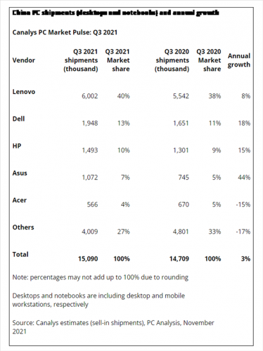 机构:第三季中国PC市场出货量超过1500万台 联想继续第一快讯