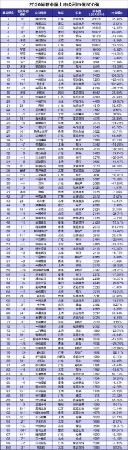 【2020中国市值500强企业完整名单】