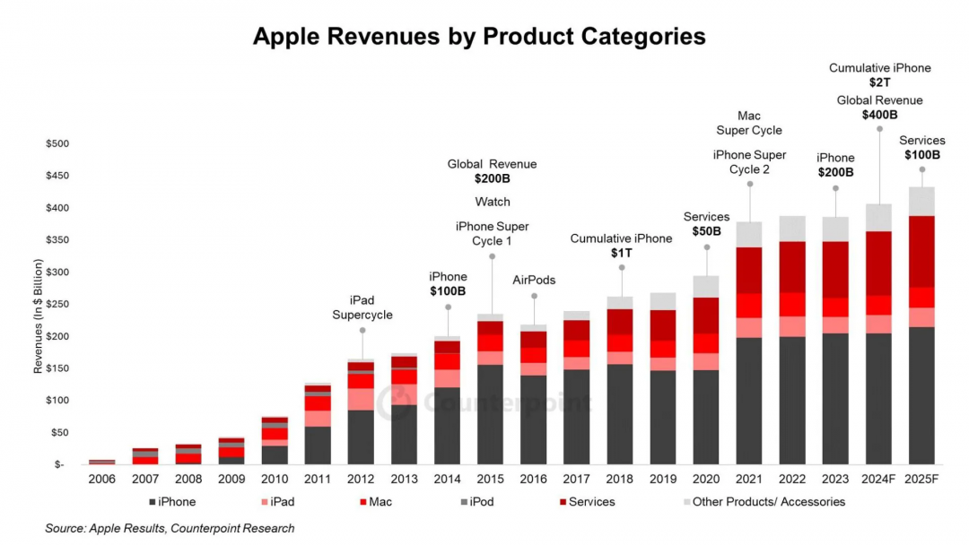 同时,正如我们在之前的报告中所说,服务收入将继续增长,并在 2025 年达到创纪录的水平,首次突破 1000 亿美元大关。