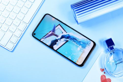 华为nova 5i烟雨青蓝延续了极点全面屏设计方案,正面采用了一块6.4英寸全高清屏幕,分辨率为2310×1080像素。极点全面屏方案,也被称作为屏下镜头技术,官方将前置摄像头隐藏于屏幕左上,实现了完整四边无异形的屏幕形状。