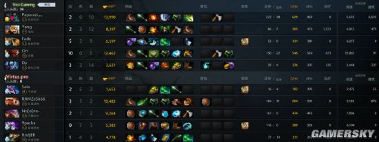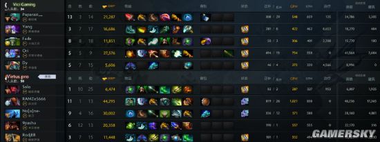 32分钟VP通过一波强势的团战击杀VG三人并成功破掉一路,最终在神装敌法师的带领下VP成功翻盘,VG 2比1 VP 本局对线期局势和前两局大致相同。